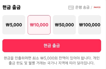 5. 출금신청 (1만원, 5천원 각각 신청가능, 24시간 제한 1일 1회)